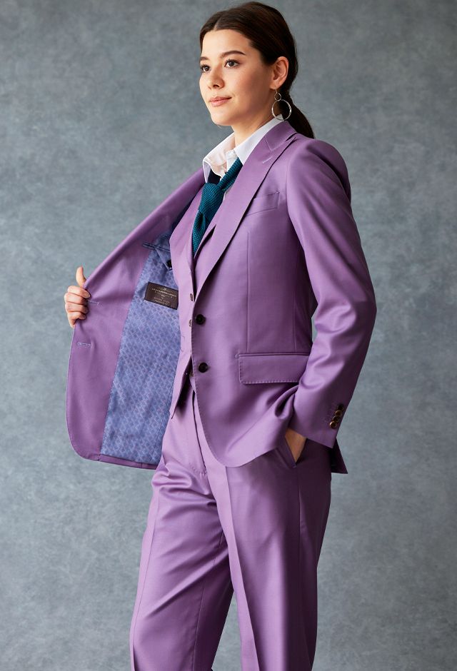 高品質でコストパフォーマンスに優れたイタリアブランド「カノニコ」で仕立てたスーツです。鮮やかなピンクパープルのスタイルで、オールシーズン着用していただけます。大人の色気を醸し出す優美なフォルムが特徴のモダンクラシックモデルで仕立てました。ベストもセットのスリーピースでジェンダーレスに。ネクタイを合わせてコーデの幅を広げることができます。※こちらはメンズモデルでお仕立てしたスーツになります。パンツはメンズモデルからさらにワイドパンツ風にアレンジしたものになります。※生地在庫は変動いたしますのでご了承くださいませ。