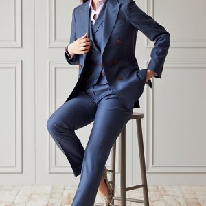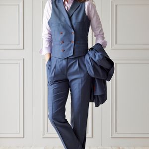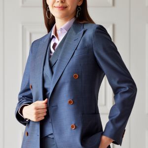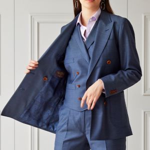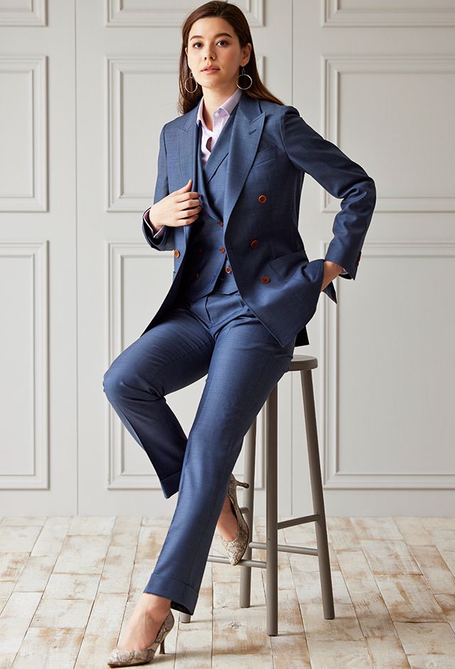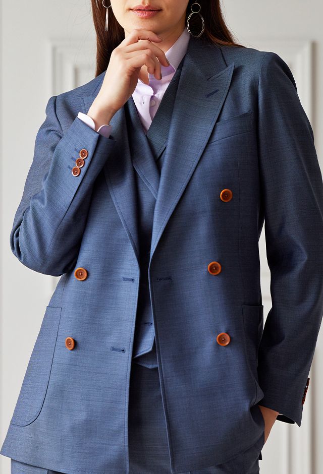 高品質でコストパフォーマンスに優れたイタリアブランド「カノニコ」で仕立てたスーツです。落ち着いたブルー無地のスタイルで、オールシーズン着用していただけます。空気を纏うような着心地を楽しむアンコンモデル(ダブル)でジャケットを仕立てました。襟付きのダブルベストでメンズライクに。さらに左右の腰と胸の4か所についたポケットでオーダーならではの拘りを。パンツはダブルの裾口でカジュアルに着こなすことができます。※こちらはメンズのモデルでお仕立てしたスーツになります。※生地在庫は変動いたしますのでご了承くださいませ。