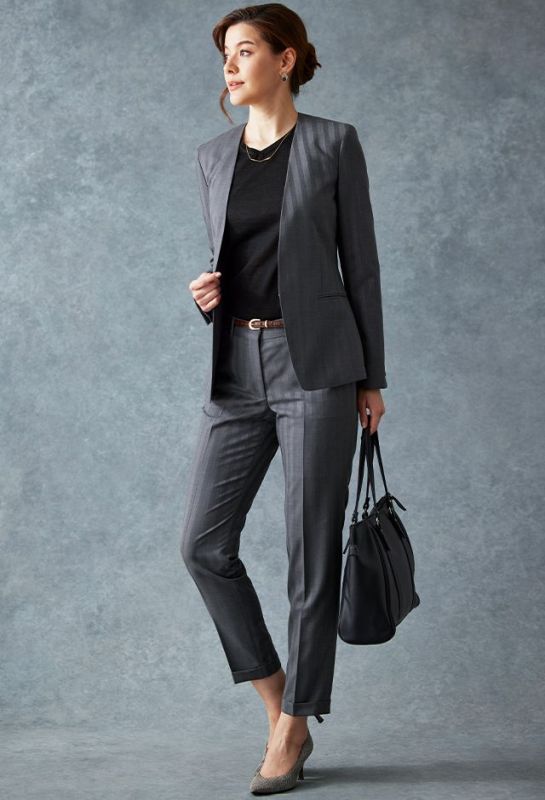 トレンドをふんだんに取り入れたデザイン性が特徴の「マルゾット」で仕立てたスーツです。堅実なイメージのあるネイビーカラー×千鳥格子柄のスタイルで、オールシーズン着用していただけます。ジャケットはテーラーギビングデザイン(2つボタン)、ボトムスは人気のテーパードパンツで仕立てました。ジャケットのポケットは斜めにすることでシャープさをプラス。同系色のボタンでシンプルなディテールに。アクセントカラーでレッドのベルトを入れメリハリと軽やかさを演出しました。