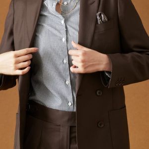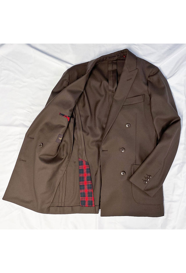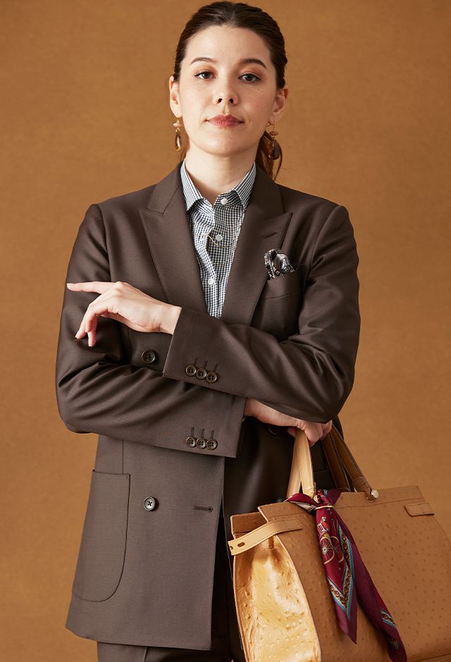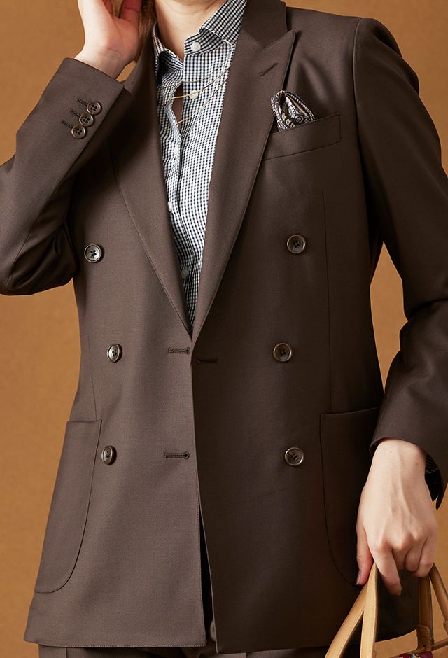 高品質でコストパフォーマンスに優れたイタリアブランド「カノニコ」で仕立てたスーツです。落ち着き感がありつつも個性を主張できるブラウンカラーのスタイルで、オールシーズン着用していただけます。空気を纏うような着心地を楽しむアンコンモデル(ダブル)でジャケットを仕立てました。パンツの裾がダブル(折り返し)になっていることで、足元にさりげないアクセントを加えて、チェック柄のシャツを合わせることで、遊び心と個性をプラスしました。※こちらはメンズのモデルでお仕立てしたスーツになります。