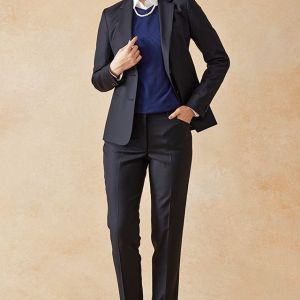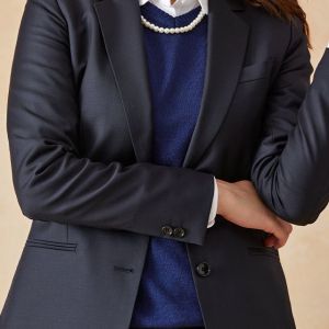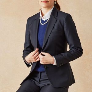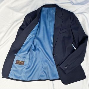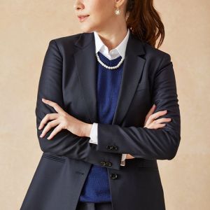 高品質でコストパフォーマンスに優れたイタリアブランド「カノニコ」で仕立てたスーツです。落ち着きと品格を兼ね備えたダークネイビーのスタイルで、オールシーズン着用していただけます。ジャケットはテーラーギビングモデル(2つボタン)、ボトムスは人気のテーパードパンツで仕立てました。腰回りをすっきりと見せる効果のあるフラップ無しのポケットを採用。チェックソックスでスーツスタイルに少し個性を持たせ、全体のファッション性を高めました。