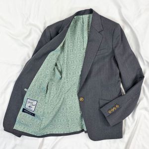 ストレッチ性の高い生地が大好評のイタリアブランド「トラバルド・トーニャ」で仕立てたスーツです。上品で落ち着いた印象を与えるグレーのスタイルで、オールシーズン着用していただけます。ジャケットはテーラーギビングモデル(1つボタン)、ボトムスはクールなセミフレアパンツで仕立てました。裏地にはインパクトのあるオリエンタル柄を採用し、スーツ生地とのギャップを楽しめるデザインに。合わせるアイテム次第で、ビジネスにもフォーマルにも幅広く着こなせます。