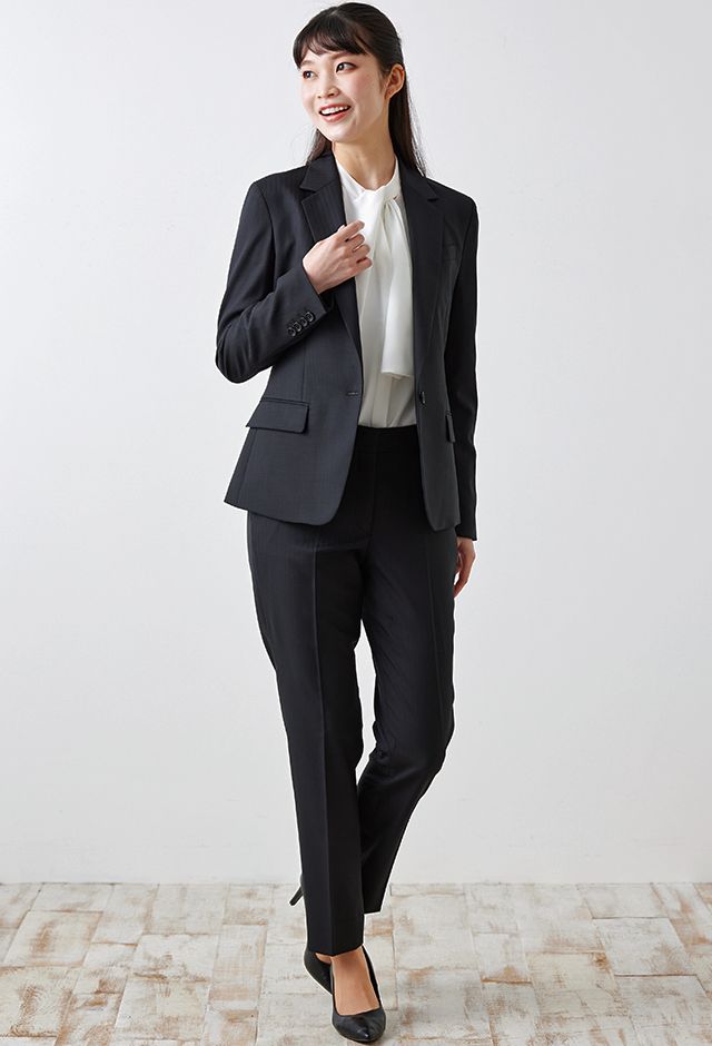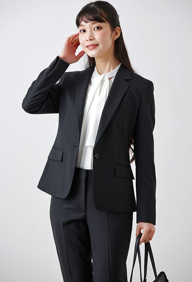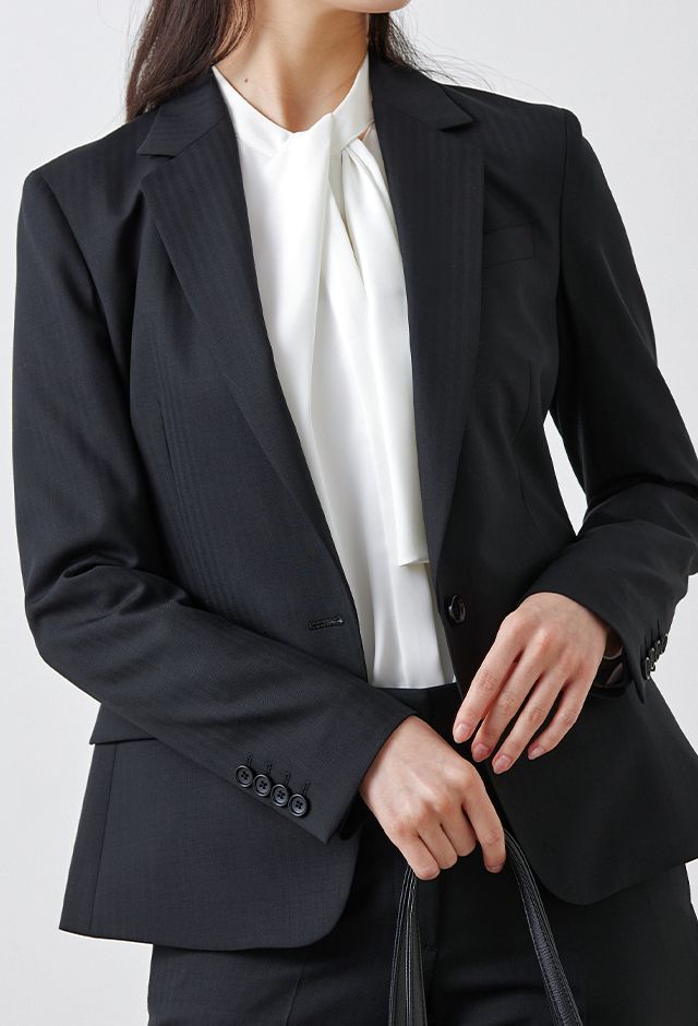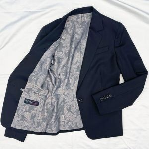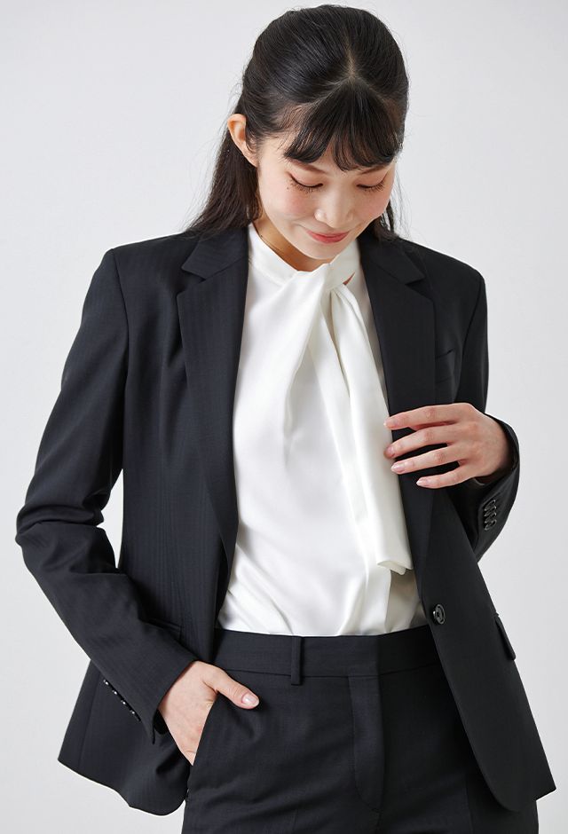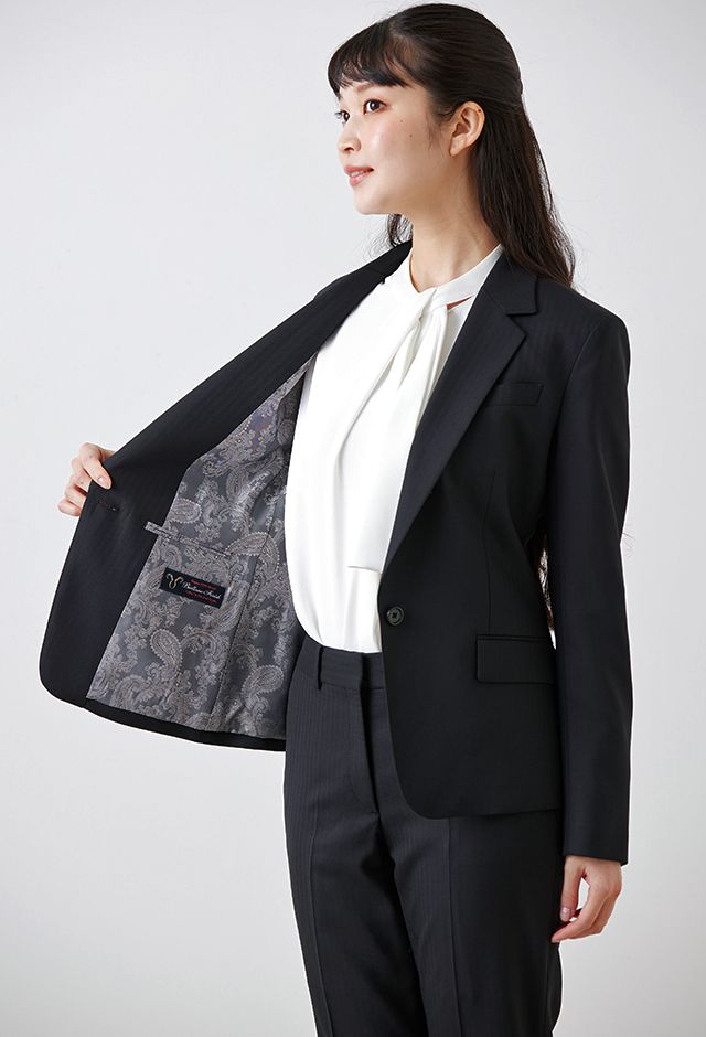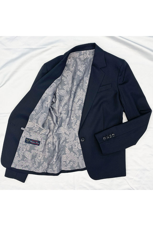 イタリアのノウハウを採用し、コストパフォーマンスに優れた「ビエラーノフィニッシュ」で仕立てたスーツです。シックで洗練された印象のブラックのスタイルで、オールシーズン着用していただけます。ジャケットはテーラーギビングモデル(1つボタン)、ボトムスは人気のテーパードパンツで仕立てました。お洒落でエレガンスな印象を与えるグレーのペイズリー柄裏地を採用。シックで洗練された印象のブラックに、生地の上質さが際立つヘリンボーン柄のスタイルで、抜け感を演出しました。※生地在庫、生地入荷時期などは変動いたしますのでご了承くださいませ。