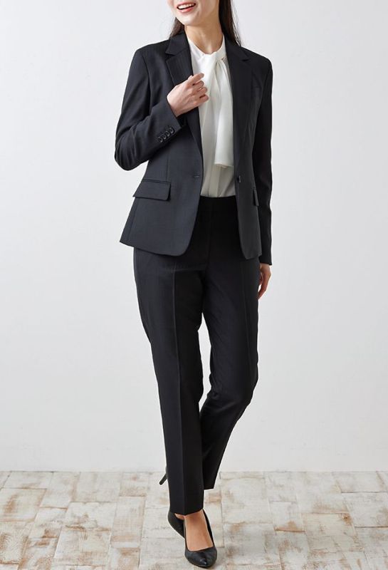 ツイード調の生地がエレガントな印象を演出するブラックのスタイルで、秋冬シーズンの生地になります。ジャケットはノーカラーデザイン(クルーネック/ホック)ボトムスは定番のタイトスカートで仕立てました。フラップのないポケットが、シンプルなデザインを際立たせ、生地の上質さを引き立てます。カラーをまとめて統一感を出せば、ぐっと上品な仕上がりに。お受験・卒業式・入学式などのセレモニーシーンにも重宝するコーデです。※生地在庫、生地入荷時期などは変動いたしますのでご了承くださいませ。