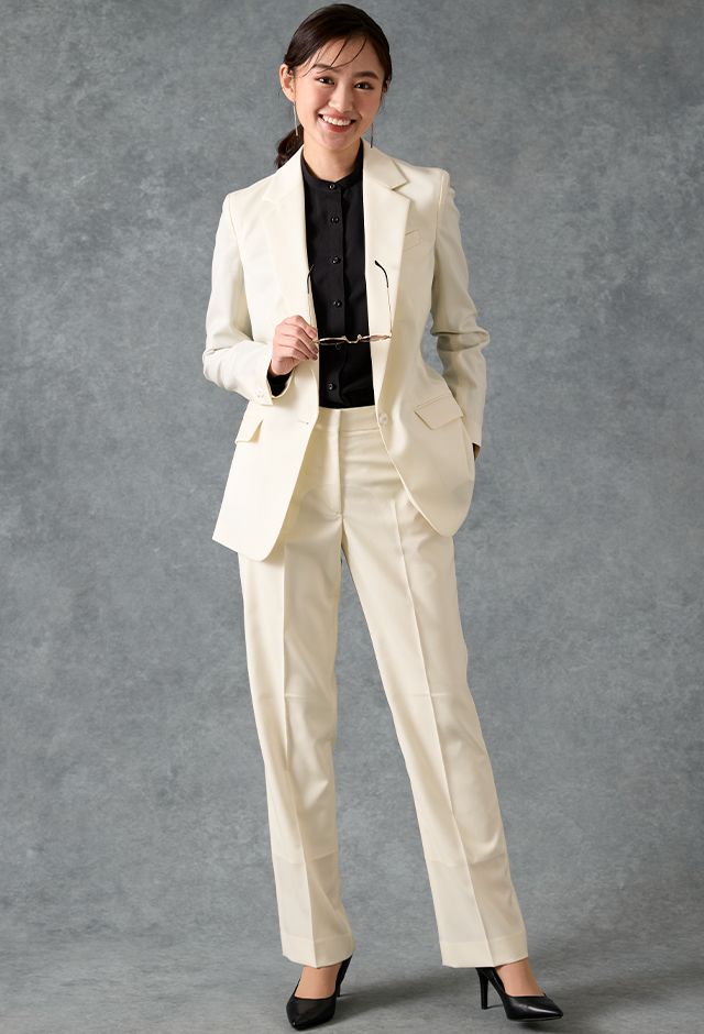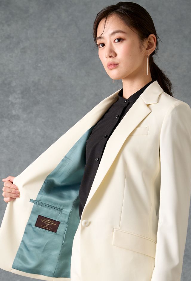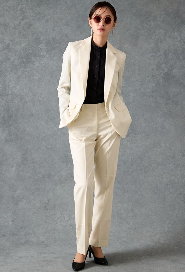 オーダースーツ専門店GlobalStyleで取り扱っている「ホワイトスーツ・無地のコーディネート(CANONICO)|887-610-550(1)|スタイルブック(レディース)」の紹介ページです。本格オーダースーツが1着2万円台~!約5,000種類の生地をリーズナブルな価格でご用意しております。
