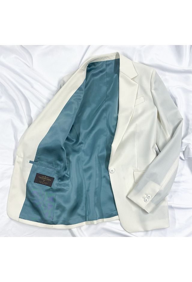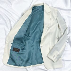 高品質でコストパフォーマンスに優れたイタリアブランド「カノニコ」で仕立てたスーツです。上品な印象を与える真っ白なスタイルで、春夏シーズンの生地になります。ジャケットはテーラーギビングデザイン(1つボタン)、ボトムスはクールなセミフレアパンツで仕立てました。ジャケットはベーシックなノッチドラペルを採用し、汎用性の高いデザインに。ブラックシャツでコントラストを効かせたモノトーンスタイルで、特別な日のディナーやパーティーに最適な着こなしです。