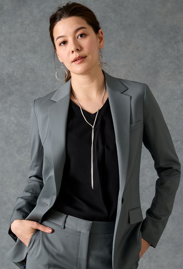 オーダースーツ専門店GlobalStyleで取り扱っている「グリーン・カーキスーツ・無地のコーディネート(TRABALDO TOGNA)|90304U-1-1603|スタイルブック(レディース)」の紹介ページです。本格オーダースーツが1着2万円台~!約5,000種類の生地をリーズナブルな価格でご用意しております。