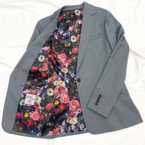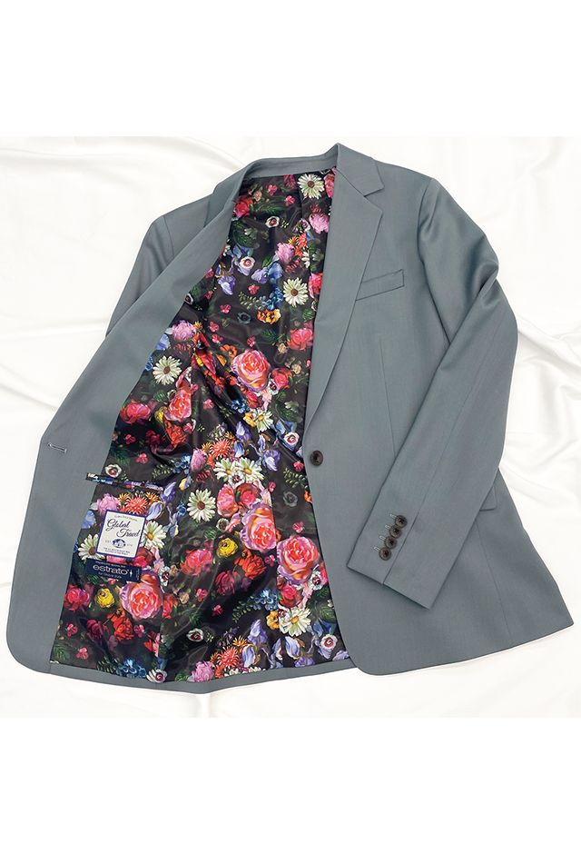 ストレッチ性の高い生地が大好評のイタリアブランド「トラバルド・トーニャ」で仕立てたスーツです。落ち着いたトーンのグリーンカラーのスタイルで、春夏シーズンの生地になります。ジャケットはテーラーギビングデザイン(1つボタン)、ボトムスはクールなセミフレアパンツで仕立てました。見えない部分に遊び心を加え、裏地には華やかな花柄を採用。Vネックのブラウスと合わせ力強いビジネススタイル。ここぞという時のプレゼンや商談などの場面にふさわしい一着です。