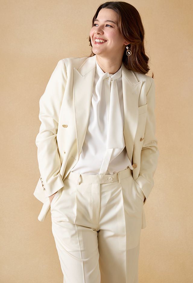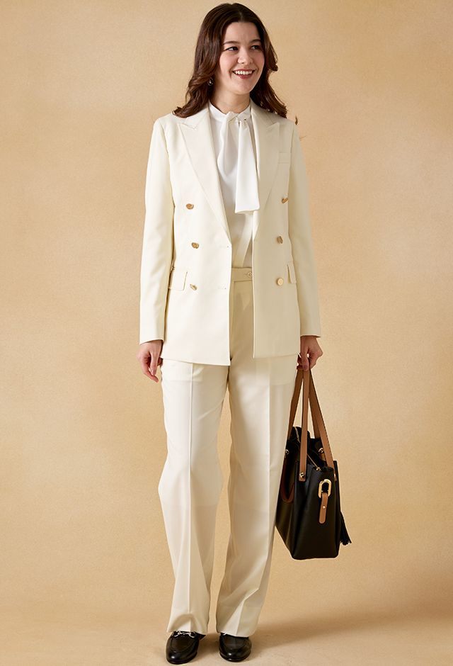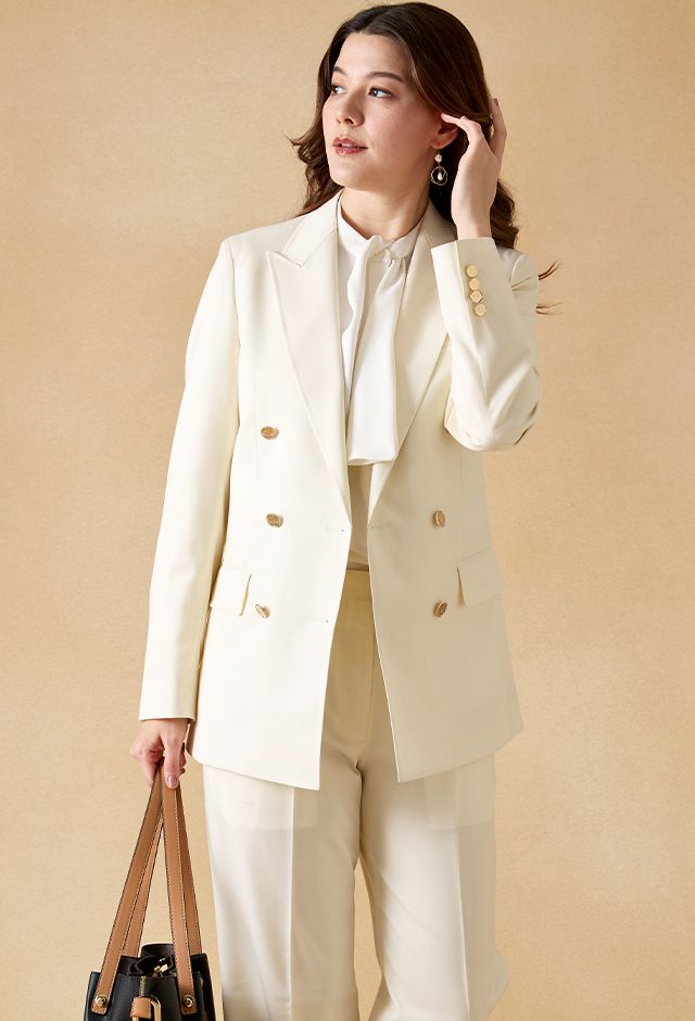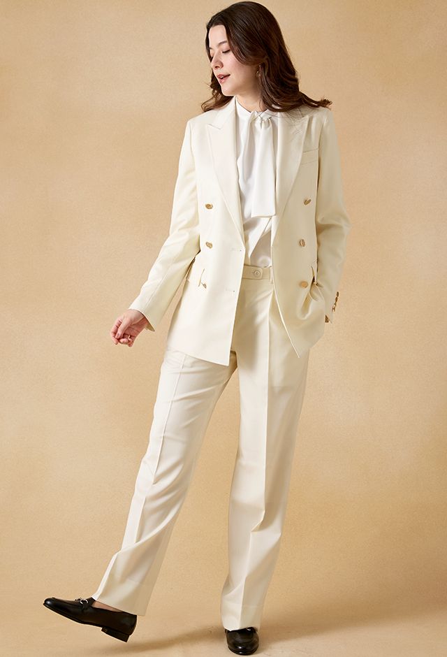 オーダースーツ専門店GlobalStyleで取り扱っている「ホワイトスーツ・無地のコーディネート(CANONICO)|887-610-550|スタイルブック(レディース)」の紹介ページです。本格オーダースーツが1着2万円台~!約5,000種類の生地をリーズナブルな価格でご用意しております。