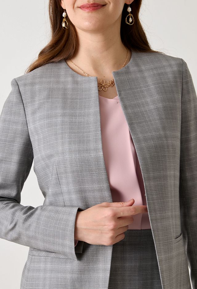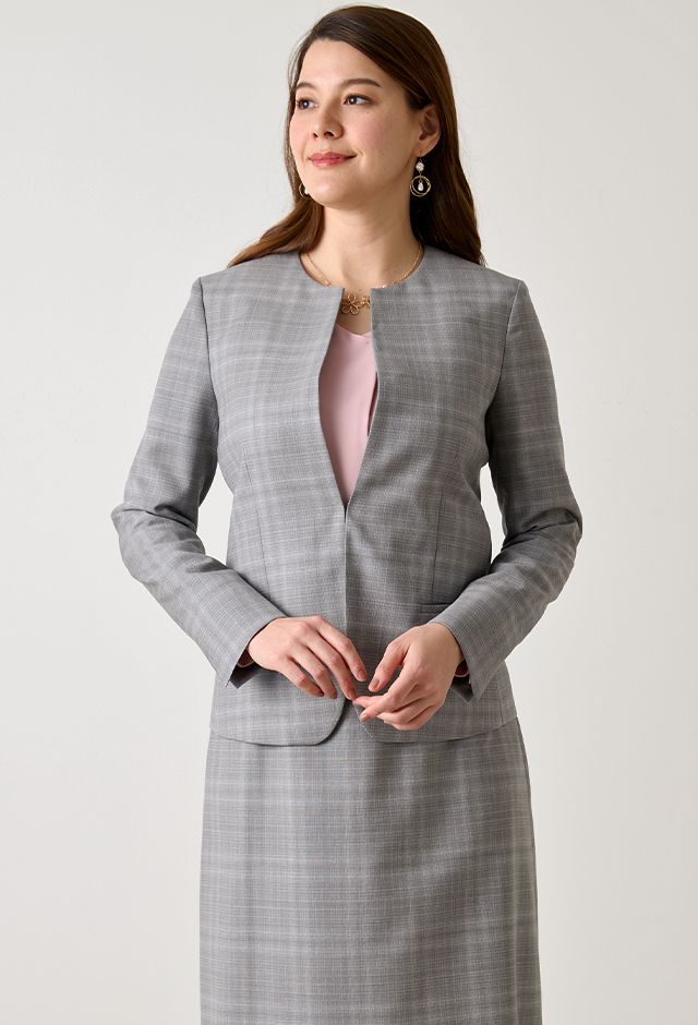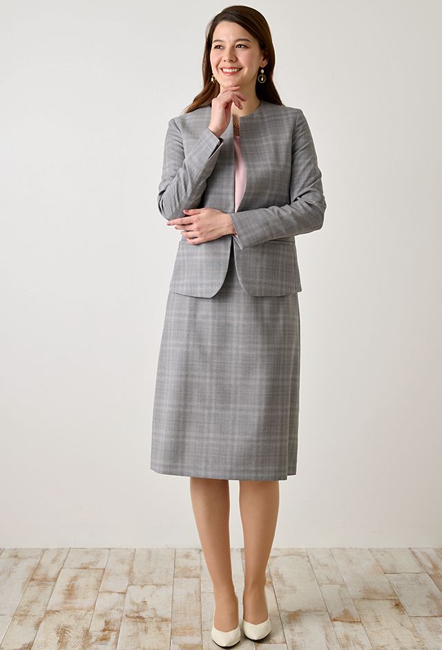 オーダースーツ専門店GlobalStyleで取り扱っている「ライトグレースーツ・チェックのコーディネート(MARZOTTO)|3-D0153F4540-0040|スタイルブック(レディース)」の紹介ページです。本格オーダースーツが1着2万円台~!約5,000種類の生地をリーズナブルな価格でご用意しております。