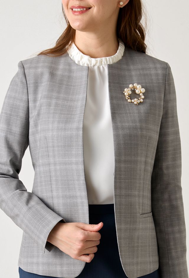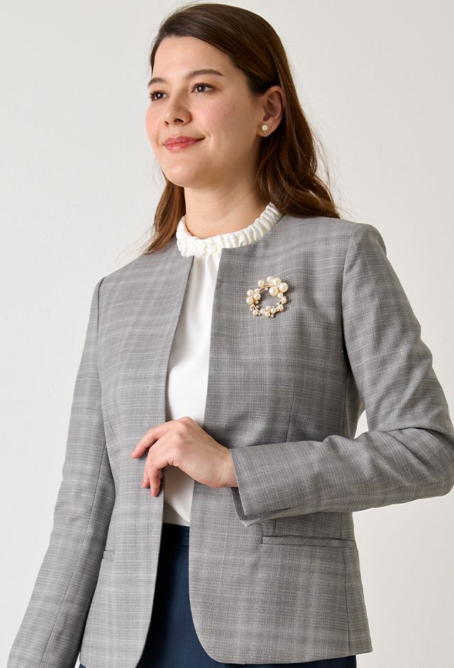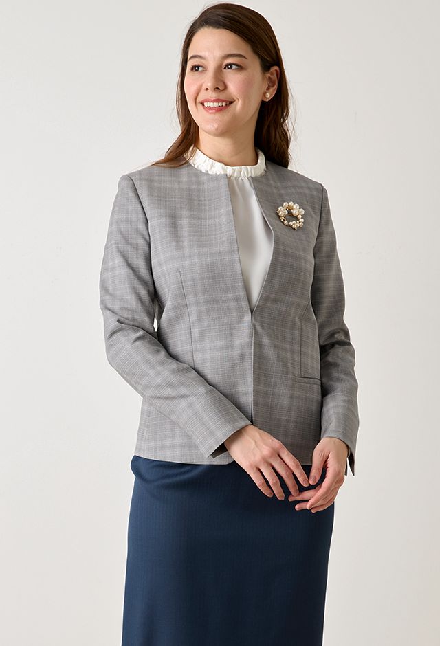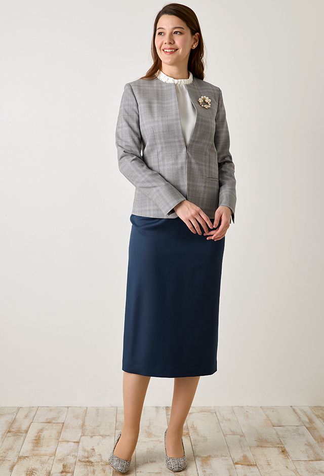 オーダースーツ専門店GlobalStyleで取り扱っている「ライトグレースーツ・チェックのコーディネート(MARZOTTO)|3-D0153F4540-0040(JK)|スタイルブック(レディース)」の紹介ページです。本格オーダースーツが1着2万円台~!約5,000種類の生地をリーズナブルな価格でご用意しております。