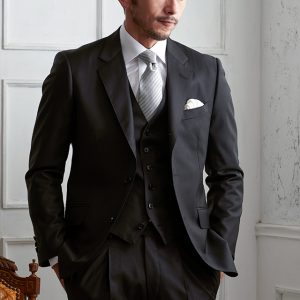 80ケ国以上にファンを持つ世界的なイギリスブランド「ドーメル」で仕立てたスーツです。艶感の美しいブラックカラーにシンプルな無地のスタイルで、オールシーズン着用していただけます。人気の英国系モデル・モダンブリティッシュモデルで仕立てました。ポケットは斜め(スラント)にすることでよりシャープな印象に仕上がります。白シャツや光沢感のあるネクタイと組み合わせた、フォーマルシーンで重宝するコーデです。※生地在庫は変動いたしますのでご了承くださいませ。