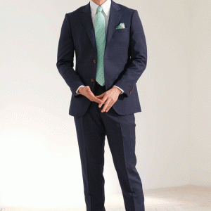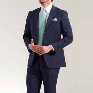 コストパフォーマンスの高さもからも支持されている「アンジェリコ」でお仕立てしたスーツです。人気のダークネイビーにさり気ないチェック柄が入ったスタイルで、春夏シーズンの生地になります。人気の英国系モデル・モダンブリティッシュモデルで仕立てました。ブラウン系の存在感のあるボタン。重ねボタンにすることで手元に立体感を持たせてくれます。パステル系のグリーンカラーを組み合わせることでフレッシュに仕上げたコーデです。※生地在庫は変動いたしますのでご了承くださいませ。