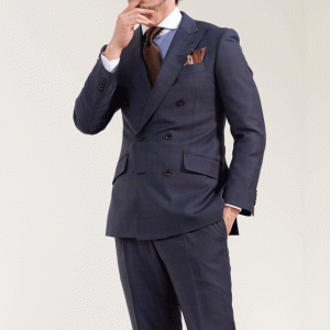 80ケ国以上にファンを持つ世界的なイギリスブランド「ドーメル」で仕立てたスーツです。落ち着きのあるダークネイビーにさり気ないイエローが入ったスタイルで、オールシーズン着用していただけます。大人の色気を醸し出す優美なフォルムが特徴のモダンクラシックモデル(ダブル)で仕立てました。ジャケットの襟は、ダブルスーツで多く採用されるピークドラペルをチョイス。ブラウンを締め色に、ネイビーカラーで仕上げた爽やかなコーデです。※生地在庫は変動いたしますのでご了承くださいませ。