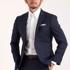 ストレッチ性の高い生地が大好評のイタリアブランド「トラバルド・トーニャ」で仕立てたスーツです。艶感の美しいダークネイビーカラーにシンプルな無地のスタイルで、オールシーズン着用していただけます。構築的なシルエットと確かな仕立て技術と融合され新しいモードスタイルを体感できるスリムフィットモデルで仕立てました。ジャケットの襟は、ダブルスーツで多く採用されるピークドラペルをシングルスーツでも採用。白シャツと組み合わせてすっきりとしたコーデです。ノーネクタイでもクールにきまります。※生地在庫は変動いたしますのでご了承くださいませ。