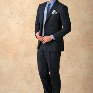 クラシカルからファンシーなデザインまで幅広く生み出すイタリアブランド「レダ」で仕立てたスーツです。ダークグレーに同系色の繊細なストライプ柄が入ったスタイルで、オールシーズン着用していただけます。最高峰グレードの「サルトリアモデル」で極上の着心地を味わうことが出来ます。ジャケットには、腰回りをすっきりと見せる効果のあるフラップ無しのポケットを採用。統一感のあるブルーシャツとネクタイでシンプルながら上品さを醸し出すコーデです。※生地在庫は変動いたしますのでご了承くださいませ。