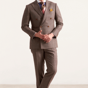 イタリアの高級生地ブランド「ゼニア」で仕立てたスーツです。トレンドのブラウンカラーに存在感のある生地の織り模様が印象的なスタイルで、オールシーズン着用していただけます。最高峰グレードの「サルトリアモデル」で極上の着心地を味わうことが出来ます。ジャケットの襟は、ダブルスーツで多く採用されるピークドラペルをチョイス。細やかな色使いで、趣きのある雰囲気を醸し出すハイセンスコーデです。ノーネクタイにすることで印象もガラっと変わります。※生地在庫は変動いたしますのでご了承くださいませ。