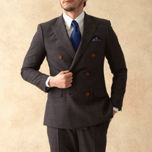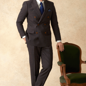 世界中のセレブリティから支持を得ているラグジュアリーブランド「ロロ・ピアーナ」で仕立てたスーツです。ダークブラウンにブルーのチェック柄を組み合わせたスタイルで、春夏シーズンの生地になります。英国の”今”を感じさせるモダンブリティッシュモデル(ダブル)で仕立てました。ジャケットの襟は、ダブルスーツで多く採用されるピークドラペルをチョイス。落ち着きのあるスーツに合わせてシンプルな小物で仕上げました。※生地在庫は変動いたしますのでご了承くださいませ。