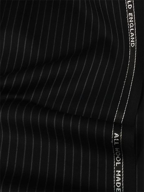 英国らしい生地感と、ソフトな風合いや上品な艶感を兼ね備えた「アーサーハリソン」で仕立てたスーツです。光沢の美しいブラックカラーにクールなストライプ柄が入ったスタイルで、秋冬シーズンの生地になります。人気の英国系モデル・モダンブリティッシュモデルで仕立てました。ポケットは斜め(スラント)にすることでよりシャープな印象に仕上がります。様々なシーンで重宝するモノトーンコーデに、ブルーのチーフで刺し色をプラスしたコーデです。※生地在庫は変動いたしますのでご了承くださいませ。