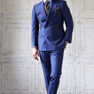 イタリアの老舗高級メーカー「イートーマス」で仕立てたスーツです。発色の綺麗なネイビーに同系色のチェック柄を組み合わせたスタイルで、オールシーズン着用していただけます。大人の色気を醸し出す優美なフォルムが特徴のモダンクラシックモデル(ダブル)で仕立てました。ジャケットの襟は、ダブルスーツで多く採用されるピークドラペルをチョイス。ボタンのブラウンと合わせてブラウンのネクタイやチーフをプラスしたバランスの良いコーデです。※生地在庫は変動いたしますのでご了承くださいませ。