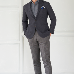 ストレッチ性の高い生地が大好評のイタリアブランド「トラバルド・トーニャ」で仕立てたスーツです。定番のグレーカラーに生地の織り模様で立体感のあるスタイルで、秋冬シーズンの生地になります。最高峰グレードの「サルトリアモデル」で極上の着心地を味わうことが出来ます。カジュアルな雰囲気のジャケットと相性が良いアウトポケットオプションで軽やかな印象に。全体をグレー系でまとめて統一感を持たせたジャケパンコーデです。※生地在庫は変動いたしますのでご了承くださいませ。