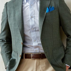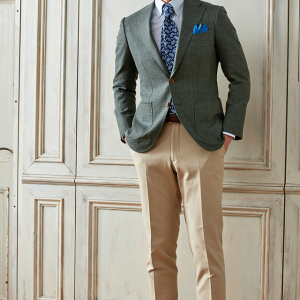 イタリアの高級生地ブランド「ゼニア」で仕立てたスーツです。サラッとした素材と流行のカーキを組み合わせたスタイルで、春夏シーズンの生地になります。ミケランジェロレジェロモデルで、一度羽織ると手放せなくなる軽い着心地を感じていただけます。カジュアルな雰囲気のジャケットと相性が良いアウトポケットオプションで軽やかな印象に。淡いブルーのシャツやブルー小物と組み合わせた爽やかなジャケパンコーデです。※生地在庫は変動いたしますのでご了承くださいませ。