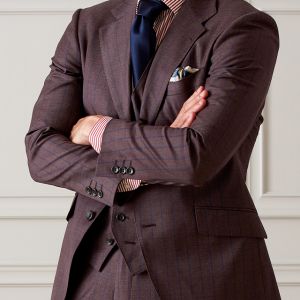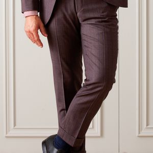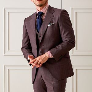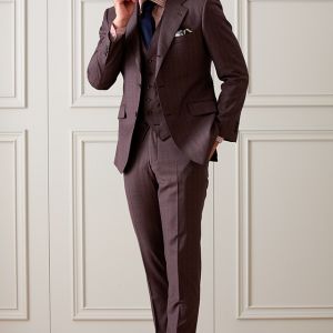 生地本来の持つ雰囲気にこだわるイタリアのブランド「グアベロ」で仕立てたスーツです。赤みを帯びたブラウンカラーとストライプ柄を組み合わせたスタイルで、オールシーズン着用していただけます。人気の英国系モデル・モダンブリティッシュモデルで仕立てました。パンツはカジュアルな印象ながらビジネスシーンにも使えるダブルタイプ。スーツカラーに合わせてシャツにも赤みをプラスし、遊び心と色気溢れるコーデに仕上げました。※生地在庫は変動いたしますのでご了承くださいませ。