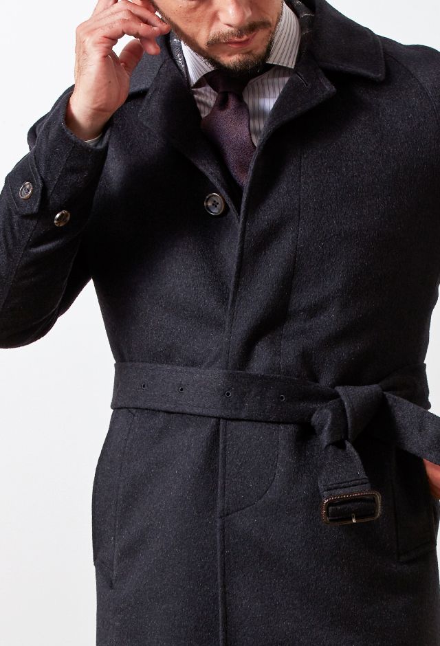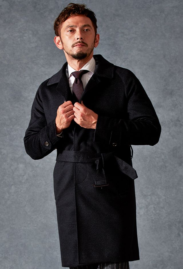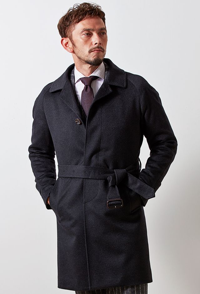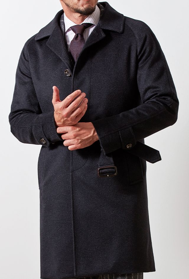 イタリアの高級生地ブランド「ゼニア」で仕立てたコートです。無地のグレーのスタイルで、トレンドに左右されにくく、長く愛用できるトラディショナルなステンカラーコートに仕立てました。デザイン性と実用性が様々な場面に対応でき、幅広い年代に愛されています。ベルトをきつく縛らず、軽く結ぶことで小慣れ感と大人の余裕を演出。コートが無地なので中のスーツは同系色のグレーや黒はもちろん、ストライプ柄などのスーツの上に羽織っても着こなせます。※生地在庫は変動いたしますのでご了承くださいませ。