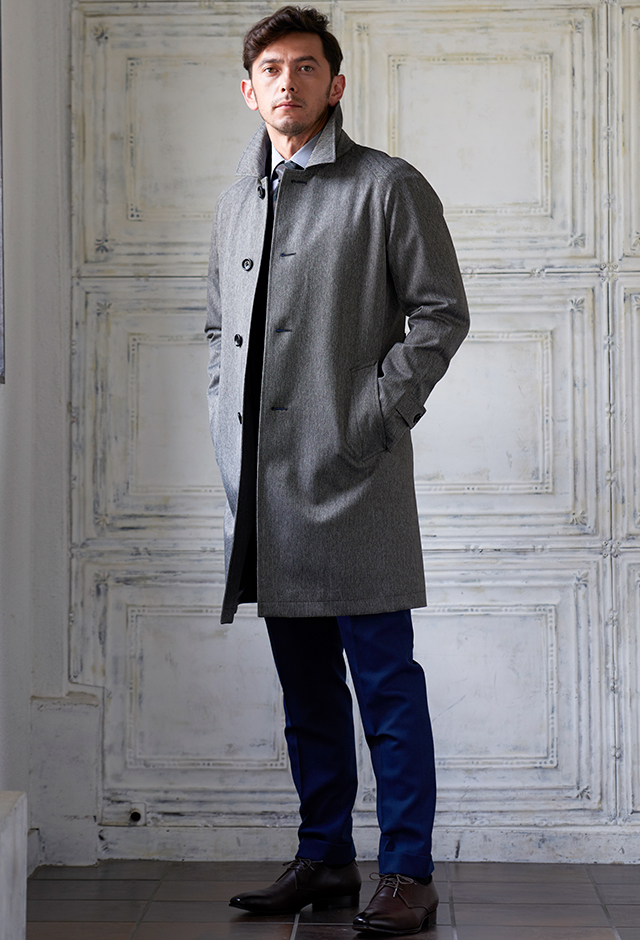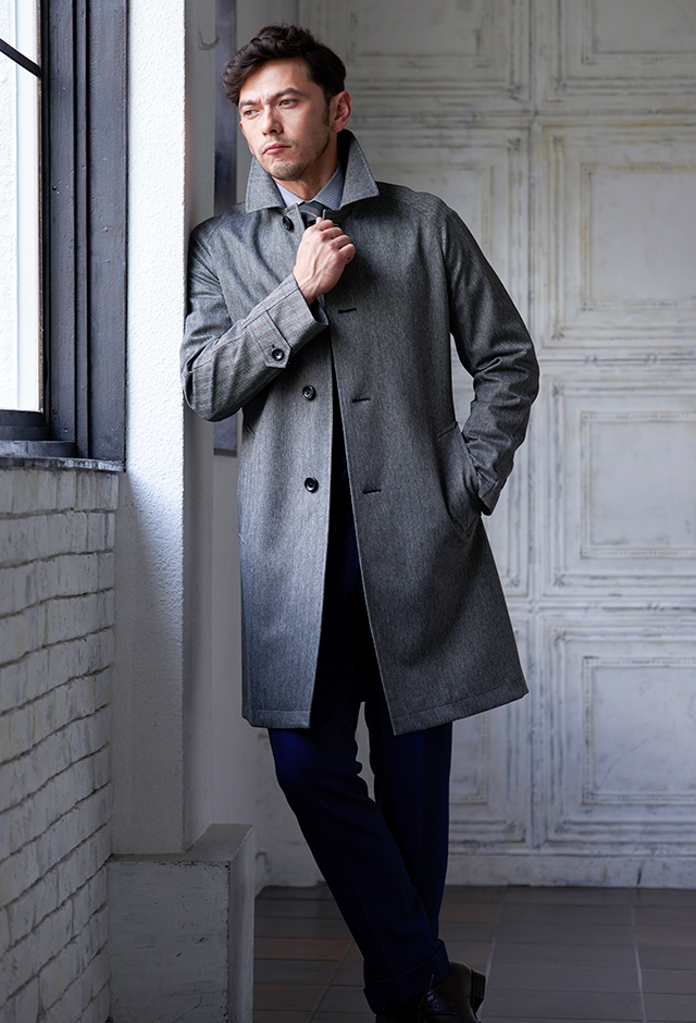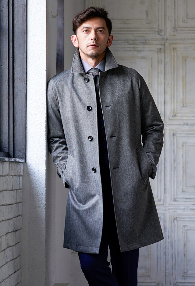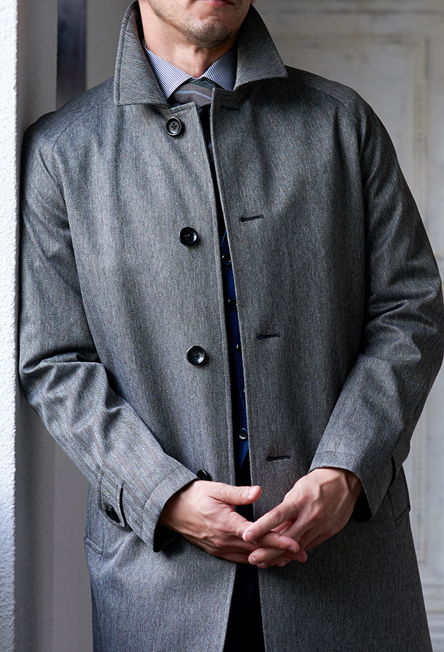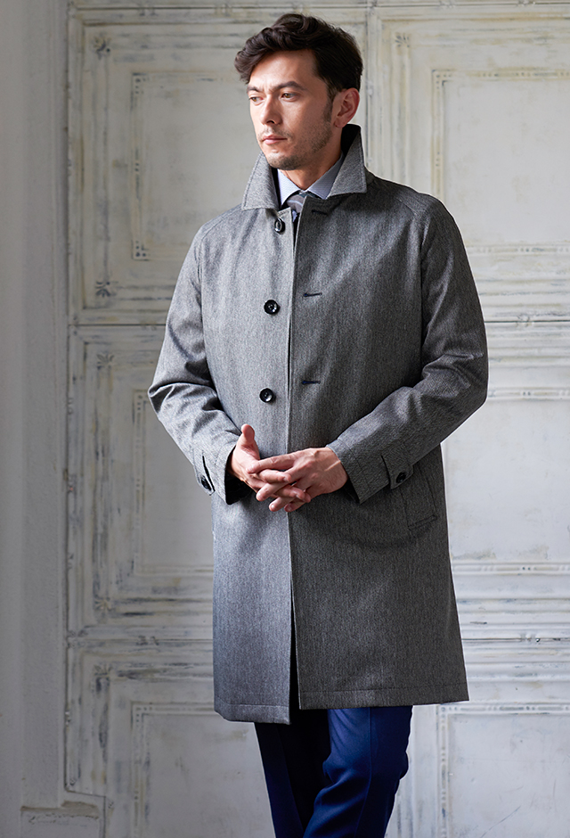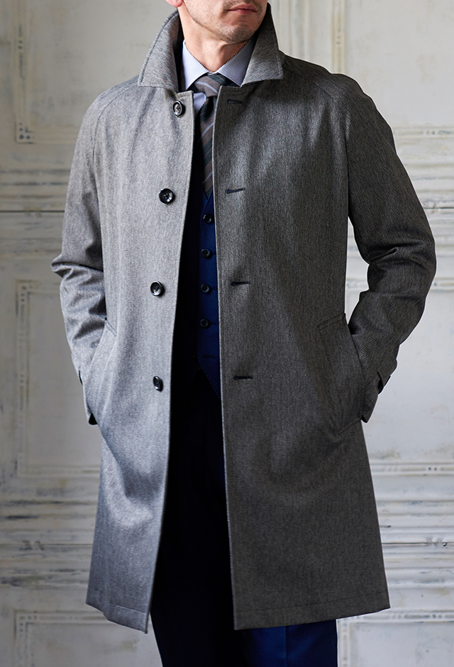 グローバルスタイルがセレクトした生地コレクションで仕立てたコートです。無地のライトグレーのスタイルで、トレンドに左右されにくく、長く愛用できるトラディショナルなステンカラーコートに仕立てました。デザイン性と実用性が様々な場面に対応でき、幅広い年代に愛されています。ラグランスリーブでリラックス感ある印象に。無彩色のグレーのコートなら、何色のスーツとも相性よく着ていただけます。※画像はイメージです。実際の生地と若干風合いが異なることがございますので、店頭でご覧くださいませ。※生地在庫は変動いたしますのでご了承くださいませ。