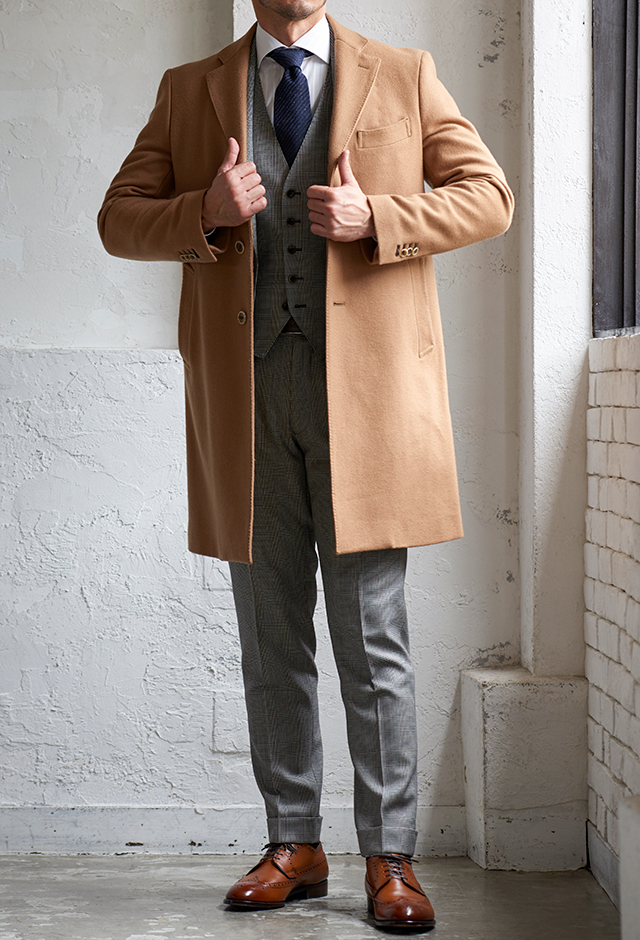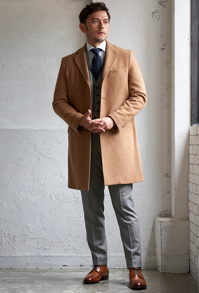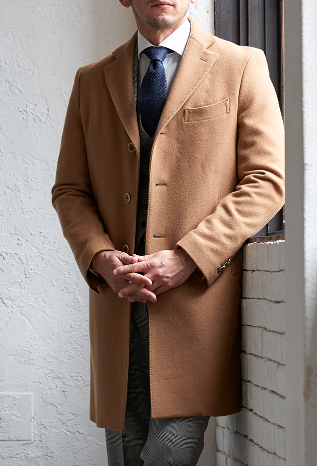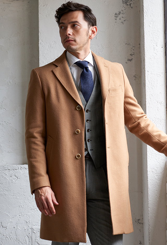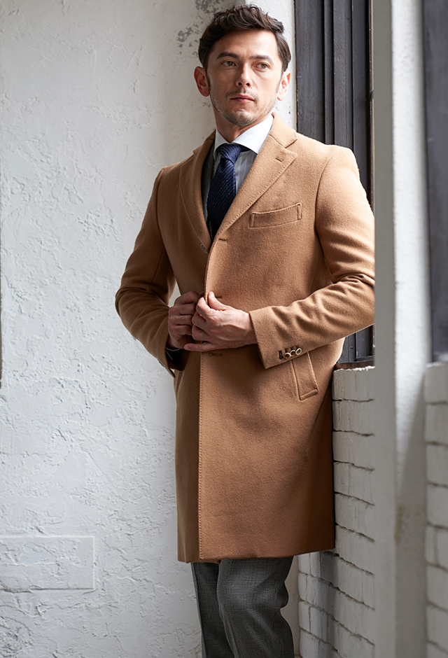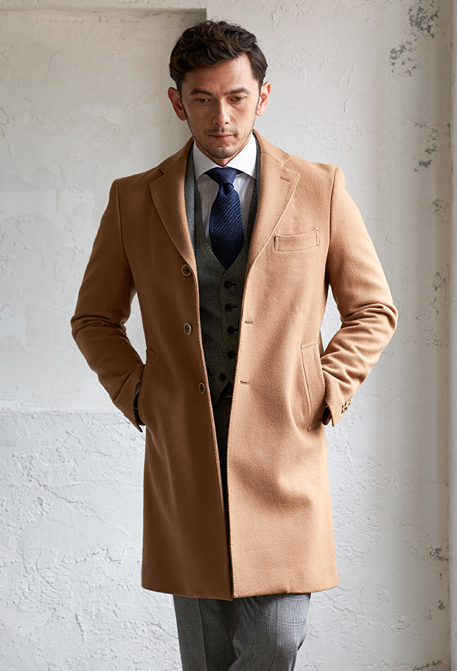 グローバルスタイルがセレクトした生地コレクションで仕立てたコートです。無地のベージュのスタイルで、上品でありながらカジュアルにも合わせることができる歴史のあるチェスターコートモデルに仕立てました。袖口は開閉できる本切羽仕様で、ボタンを一つ外し抜け感を演出。ライトグレーやブライトネイビーといった明るいトーンのスーツと相性抜群。※画像はイメージです。実際の生地と若干風合いが異なることがございますので、店頭でご覧くださいませ。※生地在庫は変動いたしますのでご了承くださいませ。