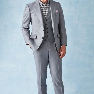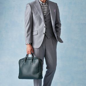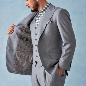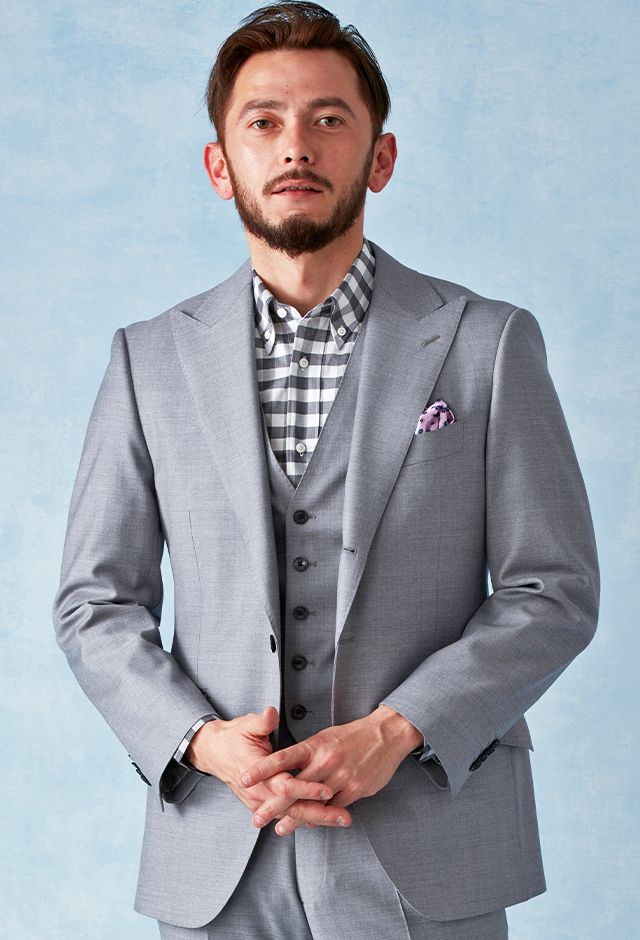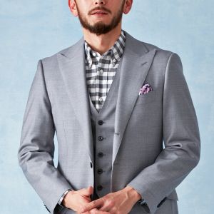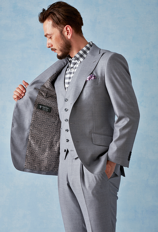 80ケ国以上にファンを持つ世界的なイギリスブランド「ドーメル」で仕立てたスーツです。上品で軽やかな印象の無地のライトグレーの生地で、オールシーズン着用していただけます。クラシックな部分とセクシーさを融合したモダンクラシックモデルで仕立てました。きらびやかなゴールドでキメ細かな柄が裏地をチョイスし、エレガントさを演出。大柄チェックのシャツを襟を開けて着こなせば、カジュアルテイストをプラスしたコーデに。※生地在庫は変動いたしますのでご了承くださいませ。
