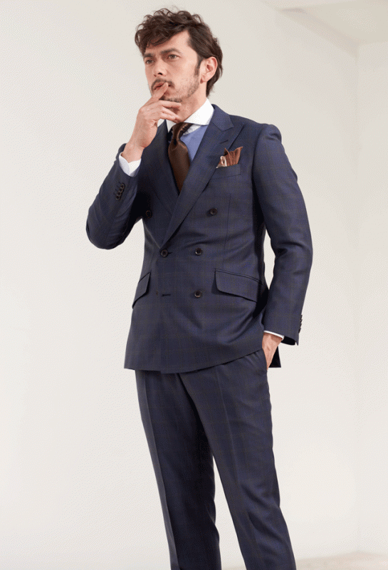 80ケ国以上にファンを持つ世界的なイギリスブランド「ドーメル」で仕立てたスーツです。クールな印象のブルーグレーの織り目の美しい生地で、オールシーズン着用していただけます。カイザーレジェロモデルで、一度羽織ると手放せなくなる軽い着心地を感じていただけます。襟のついたシングルベストを合わせることで、英国調のクラシックな装いに。ネクタイはニットタイにすることで程よい抜け感を演出したコーデに仕上げました。※生地在庫は変動いたしますのでご了承くださいませ。