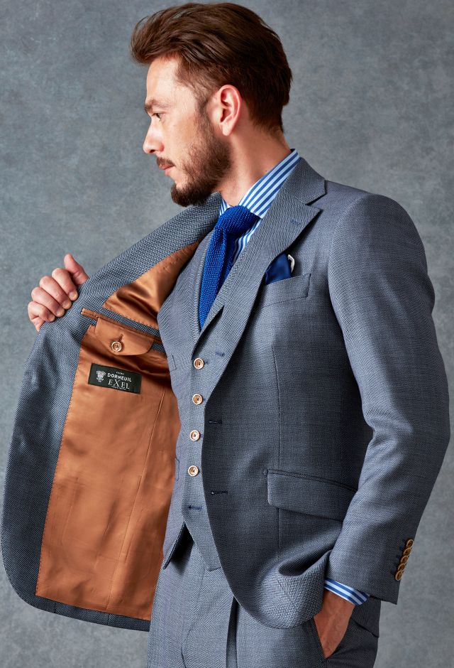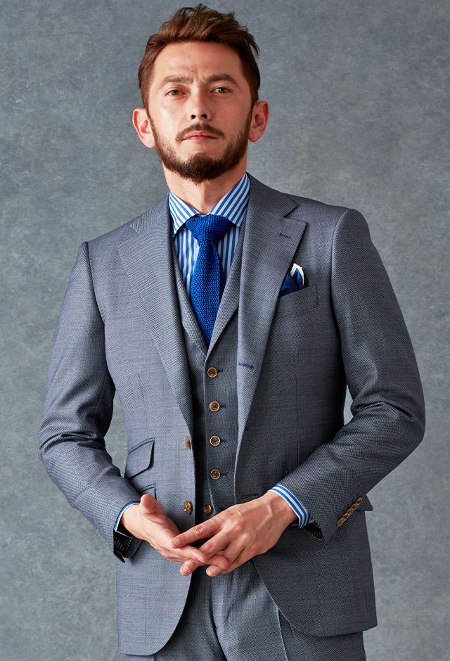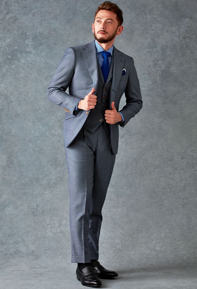 オーダースーツ専門店GlobalStyleで取り扱っている「ブルーグレースーツ・バーズアイのコーディネート(DORMEUIL)|804197」の紹介ページです。本格オーダースーツが1着2万円台~!約5,000種類の生地をリーズナブルな価格でご用意しております。