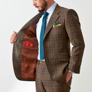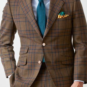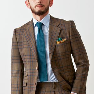 フランネルの創設者として公認されているイギリスの高級ブランド「フォックスブラザーズ」で仕立てたスーツです。茶系の混じったグリーンをベースに、ブラウンとネイビーのチェック柄を差した生地で、オールシーズン着用していただけます。人気の英国系モデル・モダンブリティッシュモデルで仕立てました。ボタンには、ブロンズ色に光るボタンをチョイス。発色の良いネクタイとチーフで差し色を入れ、感度の高いコーデに仕上げました。※生地在庫は変動いたしますのでご了承くださいませ。