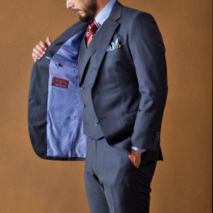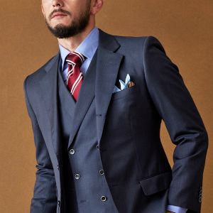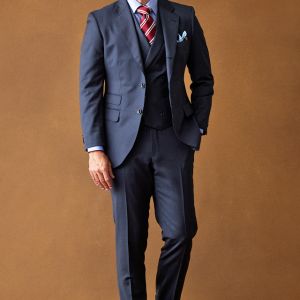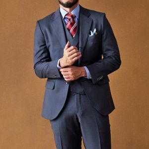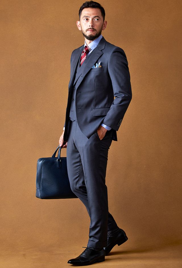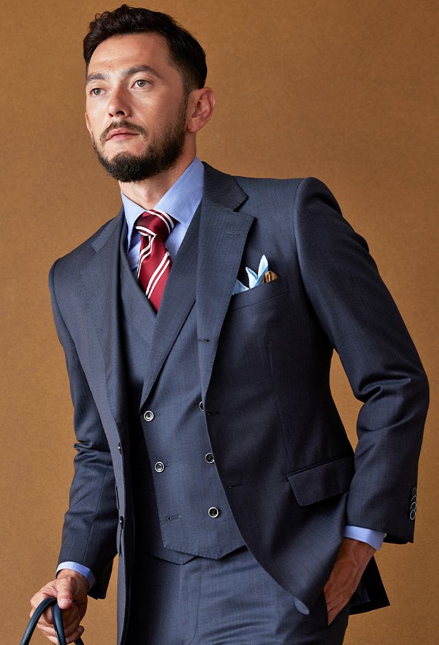 イタリアの高級生地ブランド「ゼニア」で仕立てたスーツです。落ち着いた色味のグレー×シャドーストライプのスタイルで、オールシーズン着用していただけます。人気の英国系モデル・モダンブリティッシュモデルで仕立てました。オーダーならではの手縫い風の縫い目がアクセントになるステッチを取り入れ、裏地にはライトブルーのダイヤ柄をチョイス。ネクタイには深みのあるレッドを取り入れ存在感を出し、ダブルベストでしっかり感も演出。ビジネスシーンで重宝するコーデに仕上げました。※生地在庫は変動いたしますのでご了承くださいませ。