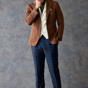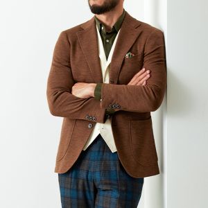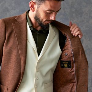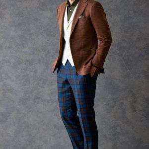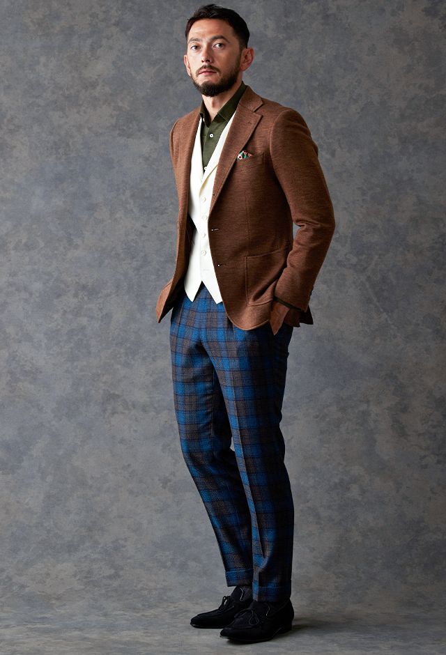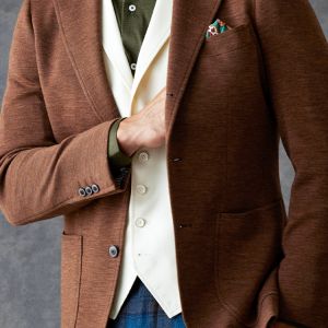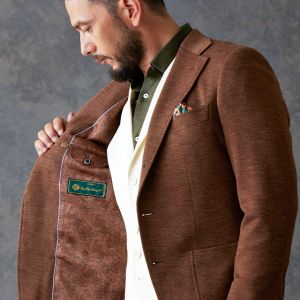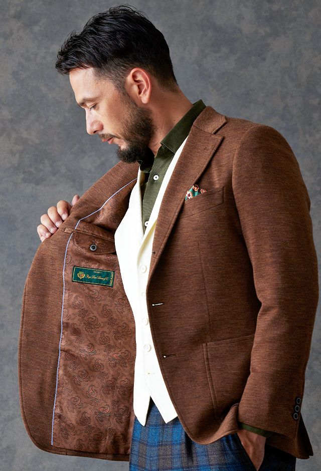世界中のセレブリティから支持を得ているラグジュアリーブランド「ロロ・ピアーナ」で仕立てたジャケットです。肌触りが良い、ブラウン無地のスタイルで、秋冬シーズンの生地になります。最高峰グレードの「カイザーモデル」で極上の着心地を味わうことが出来ます。カジュアルな装いに適したアウトポケットをチョイス。ペイズリーブラウンの裏地でジャケットのカラーと合わせました。白のベストをアクセントに、ブラウンやカーキなどのアースカラーでまとめました。※生地在庫は変動いたしますのでご了承くださいませ。