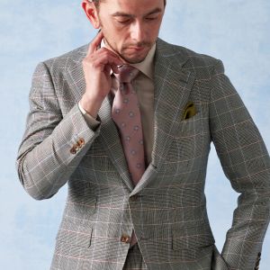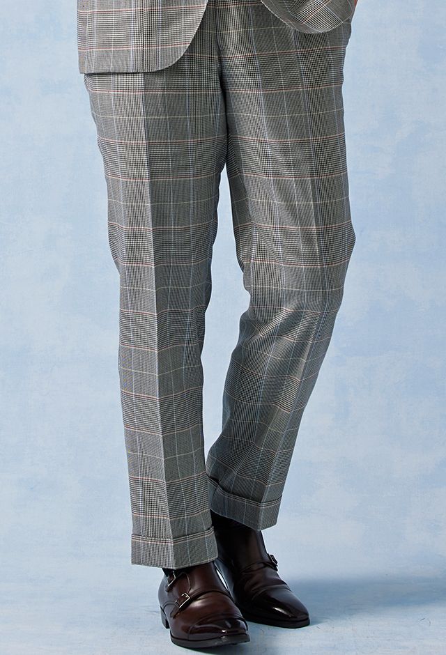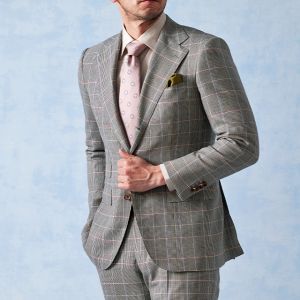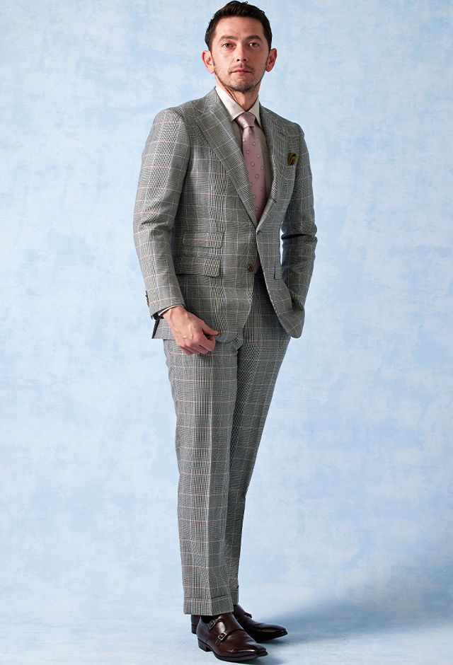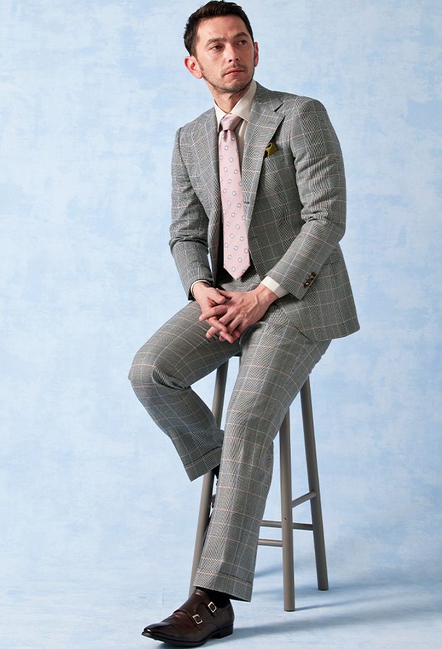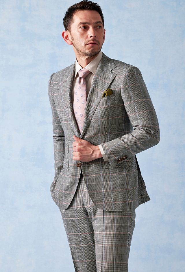 フランネルの創設者として公認されているイギリスの高級ブランド「フォックスブラザーズ」で仕立てたスーツです。ホワイトチェックをベースにレッドチェックも入ったスタイルで、春夏シーズンの生地になります。カイザーレジェロモデルで、一度羽織ると手放せなくなる軽い着心地を感じていただけます。裏地には明るいカラーのスカイブルー。ボタンは重ねボタンにすることで手元に立体感を持たせてくれます。ピンクのネクタイで春を感じる軽やかな雰囲気に仕上げました。※生地在庫は変動いたしますのでご了承くださいませ。
