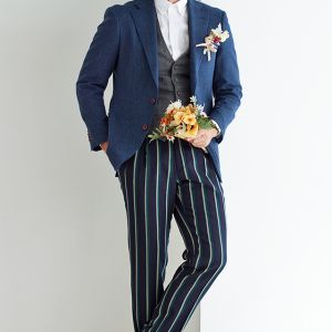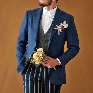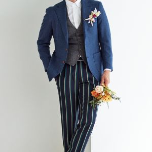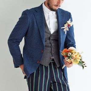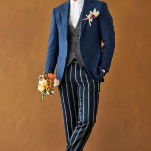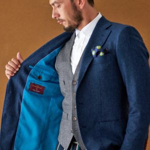 イタリアの高級生地ブランド「クロス エルメネジルド ゼニア」で仕立てたスーツです。味わいのある色味が特徴のブルーグリーンカラーのスタイルで、秋冬シーズンの生地になります。カイザーレジェロモデルで、一度羽織ると手放せなくなる軽い着心地を感じていただけます。同系色の裏地をチョイスし、カジュアルな雰囲気のジャケットと相性が良いアウトポケットオプションで軽やかな印象に。厚みのあるグレーのベストにインパクトのあるパンツを合わせた遊び心のあるジャケパンスタイル。※生地在庫は変動いたしますのでご了承くださいませ。