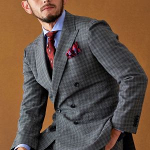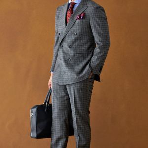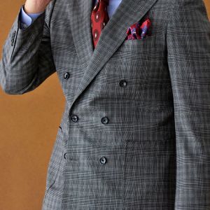 コストパフォーマンスの高さからも人気の高い「トレーニョ」で仕立てたスーツです。ライトグレーに伝統的な「グレンチェック」が入ったスタイルで、オールシーズン着用していただけます。空気を纏うような着心地を楽しむアンコンモデル(ダブル)でジャケットを仕立てました。ボタンはブラックをチョイスし、スーツにコントラストを与え、洗練された雰囲気に。ネクタイとチーフはレッドで統一することで、大胆かつ印象的な着こなしに仕上げました。※生地在庫は変動いたしますのでご了承くださいませ。