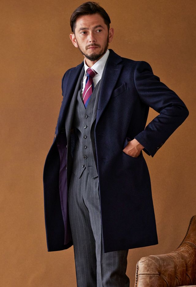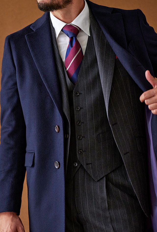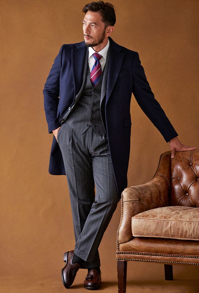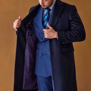 イタリアの高級生地ブランド「ゼニア」で仕立てたコートです。滑らかなで上質な生地感のネイビー×無地スタイルで、上品でありながらカジュアルにも合わせることができる歴史のあるチェスターコートモデルに仕立てました。パープルの裏地でコートを脱いだ時は鮮やかでお洒落な雰囲気になります。また、ボタンの色味が浮かないよう、ボタンの色はブラックをチョイス。落ち着きのあるネイビーカラーでスーツスタイルを際立たせた装いになります。※生地在庫は変動いたしますのでご了承くださいませ。