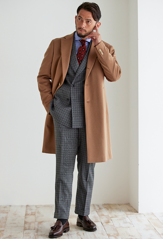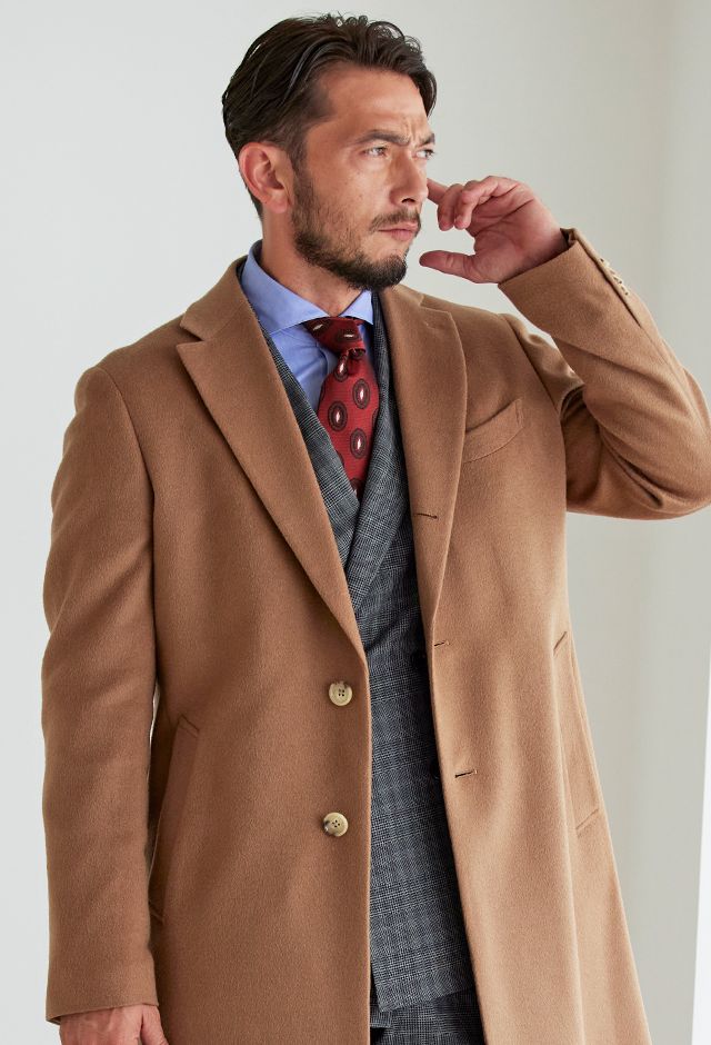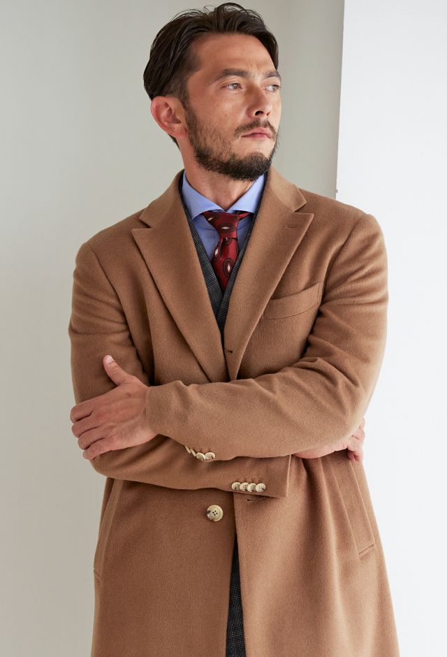 グローバルスタイルがセレクトした生地コレクションで仕立てたコートです。柔らかな印象のブラウン×無地のスタイルで、上品でありながらカジュアルにも合わせることができる歴史のあるチェスターコートモデルに仕立てました。実用性のある縦型の箱ポケットをチョイス。コートと同じアースカラーのベージュボタンで柔和でナチュラルな雰囲気に。上品さ、親しみやすさといった印象を与えるチェック柄のスーツを、より引き立てるスタイリングです。※生地在庫は変動いたしますのでご了承くださいませ。