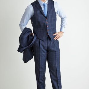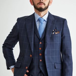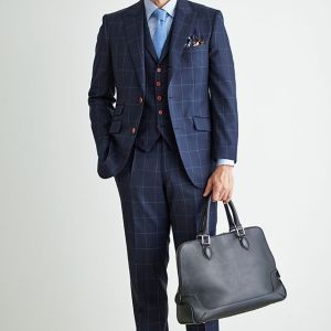 世界のアパレルメーカーやテーラーなどから品質を認められている「ジョン・フォスター」で仕立てたスーツです。ブルーのラインが印象的なウィンドウペン柄のネイビースタイルで、オールシーズン着用していただけます。人気の英国系モデル・モダンブリティッシュモデルで仕立てました。裏地にはインパクト抜群のスカル柄をチョイス。見えない箇所にもこだわりを詰めるオーダーならではの嗜みを。ブルー系の小物で合わせたワントーンコーデ。ざっくりと編まれたニットタイが季節感を演出。