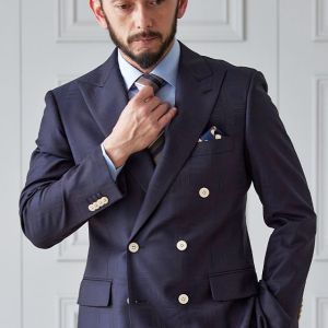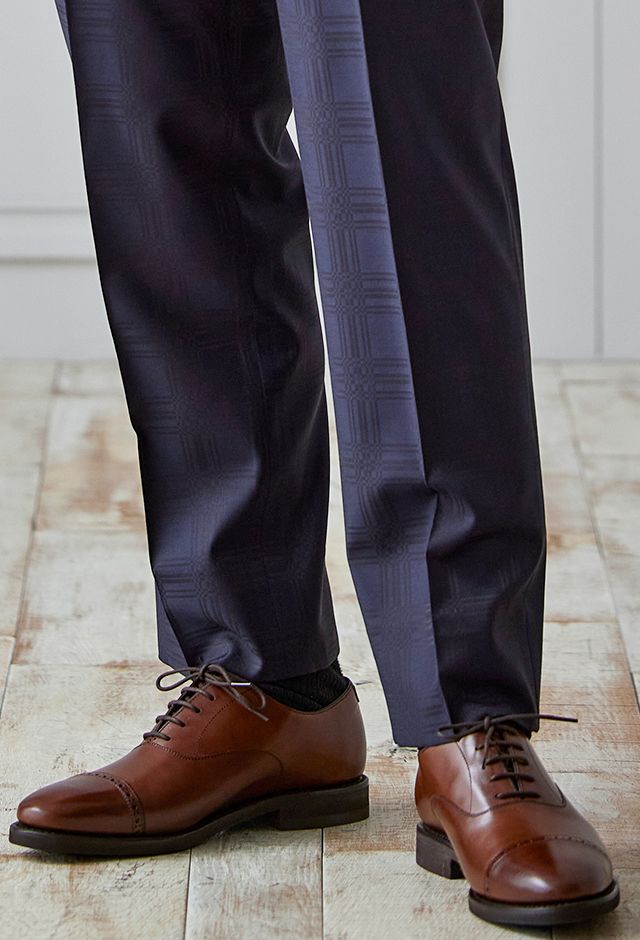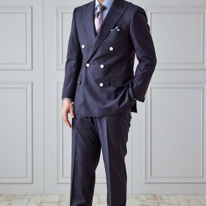 クラシカルからファンシーなデザインまで幅広く生み出すイタリアブランド「レダ」で仕立てたスーツです。特徴的なチェック柄のパープルカラースタイルで、オールシーズン着用していただけます。大人の色気を醸し出す優美なフォルムが特徴のモダンクラシックモデル(ダブル)で仕立てました。裏地にはパープルと相性の良いワインレッドの裏地や、高級感漂う貝ボタンをあしらった存在感溢れる仕上がり。ネクタイ・シャツ・チーフをブルーやパープルでまとめた程よく色気のあるコーデです。