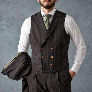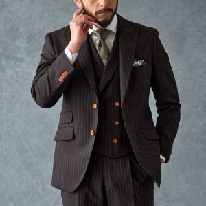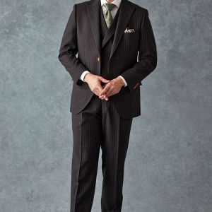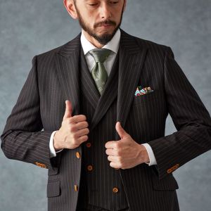 80ケ国以上にファンを持つ世界的なイギリスブランド「ドーメル」で仕立てたスーツです。さらっとした質感のブラウンカラー×ストライプ柄のスタイルで、オールシーズン着用していただけます。人気の英国系モデル・モダンブリティッシュモデルで仕立てました。ジャケットの襟は、ダブルスーツで多く採用されるピークドラペルをシングルスーツでも採用。ボタンは春夏らしいナットボタンで軽快さをプラス。ブラウンカラーと相性の良いグリーン系で小物をまとめたトレンドライクなコーデ。