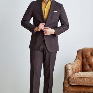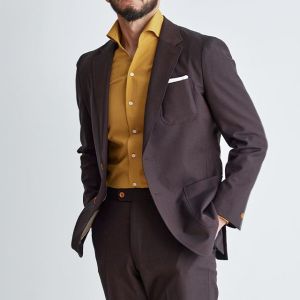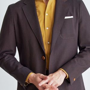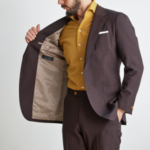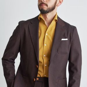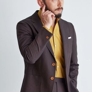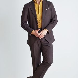 シンプルなものからファッション性の高い生地まで豊富なブランド「ディ ファビオ」で仕立てたスーツです。印象的なダークレッドカラーにしっかりとした生地感の無地のスタイルで、オールシーズン着用していただけます。オーダースーツ専門店が仕立てる、「Y.E」モデルで仕立てました。ジャケットは全てアウトポケット、スラックスはタタキ仕上げのされたベルトレスパンツで、単品使いにも最適なデザインに。インパクトのあるマスタードカラーシャツも、ジャケットのボタンカラーとリンクすることで、華美ながらも統一感のある着こなし。