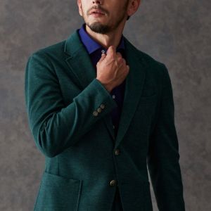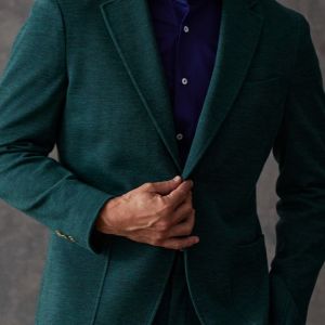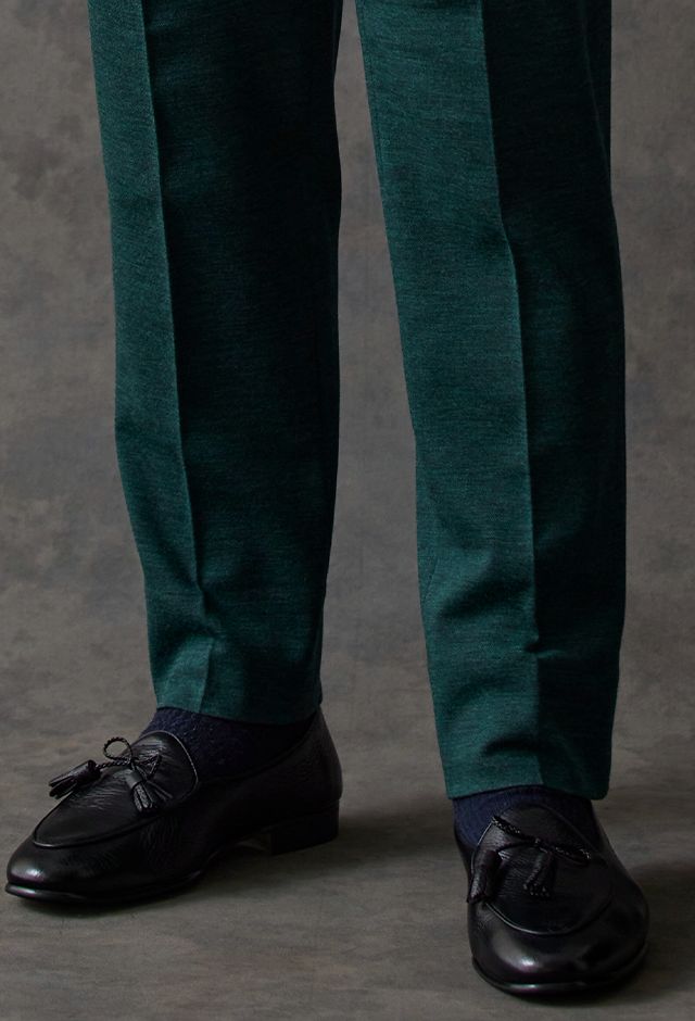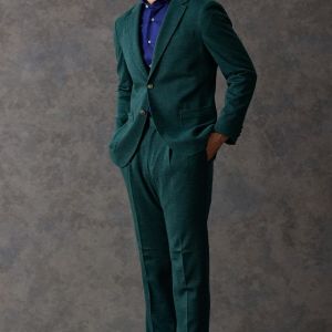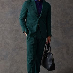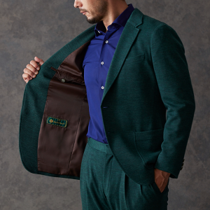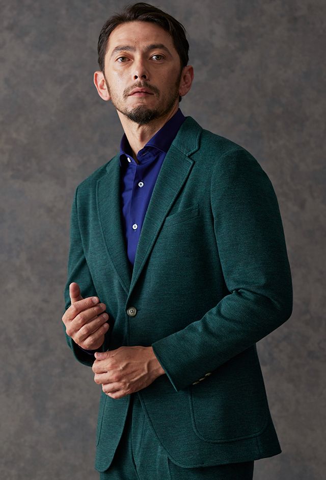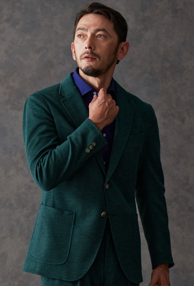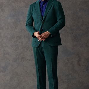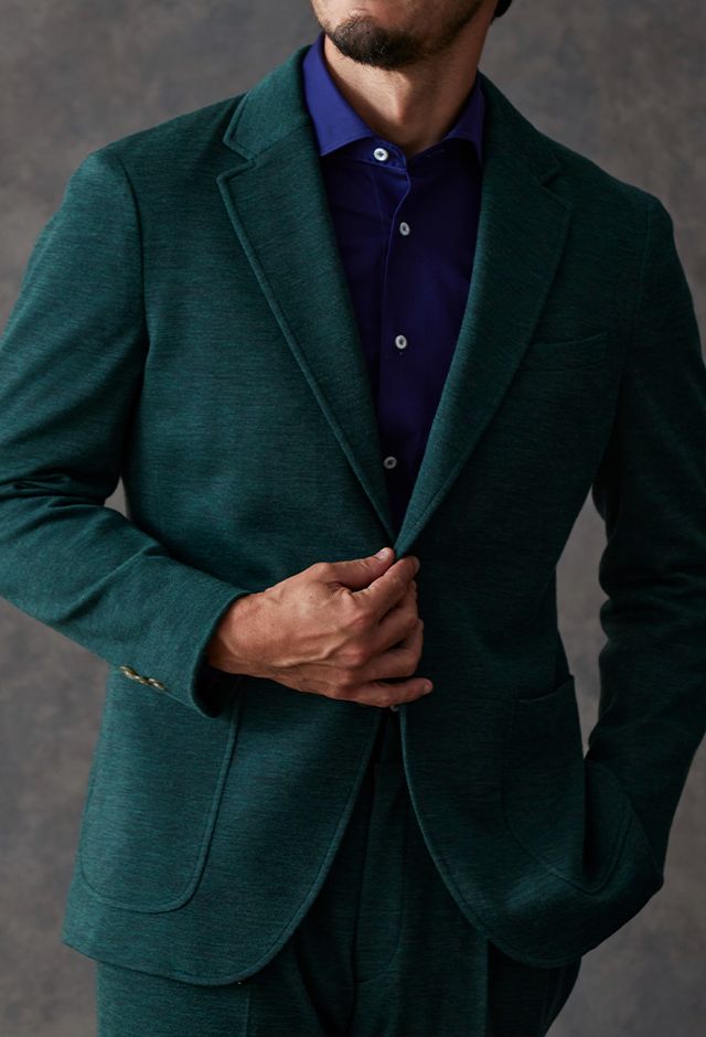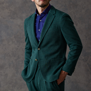 世界中のセレブリティから支持を得ているラグジュアリーブランド「ロロ・ピアーナ」で仕立てたスーツです。流行りのグリーンをベースに伸縮率が高く動きやすいニット調のスタイルで、秋冬シーズンの生地になります。カジュアルな雰囲気のアンコンモデルで軽快に仕立てました。ジャケットは同系色系の2つボタン仕様でスポーティーな印象に。裏地はブラウン系で表地との統一感を意識したチョイス。足元はシングルの裾でスッキリとした印象に。濃いめのネイビーシャツと合わせてよりカジュアル感を出しました。