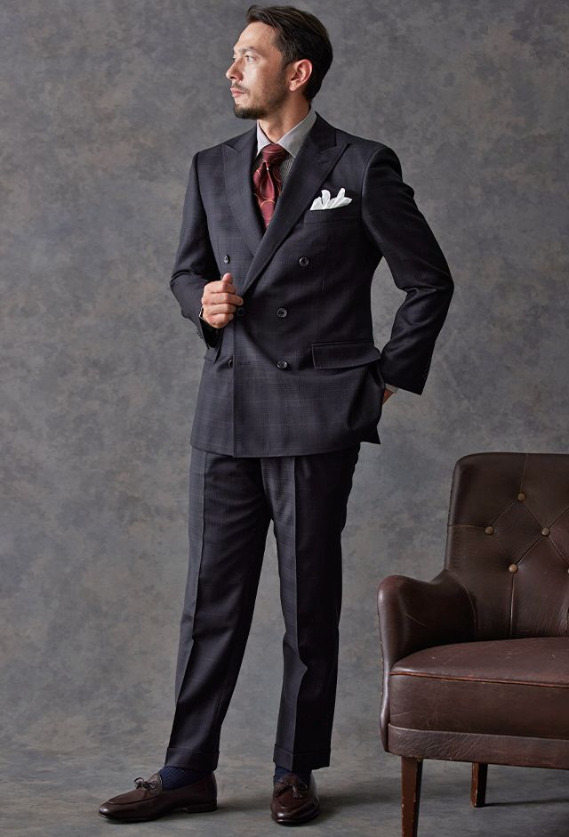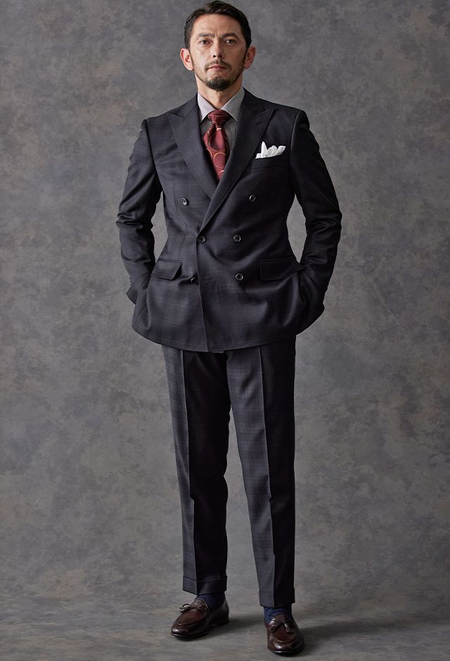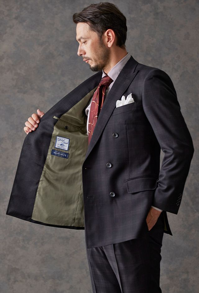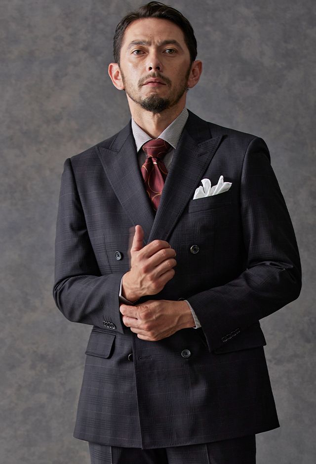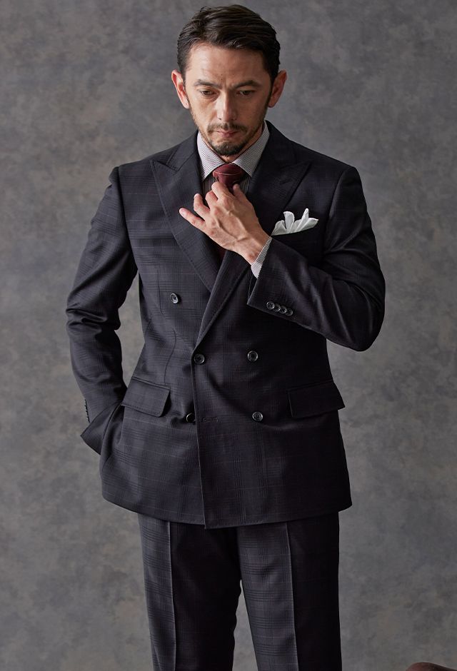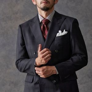 ストレッチ性の高い生地が大好評のイタリアブランド「トラバルド・トーニャ」で仕立てたスーツです。うっすらチェックが入る大人の雰囲気を出ている柄を基調として、秋冬シーズンの生地になります。大人の色気を醸し出す優美なフォルムが特徴のモダンクラシックモデル(ダブル)で仕立てました。シンプルでオーソドックスな仕様で飽きの来ない1着に。裏地もカーキで落ち着いた色気のある雰囲気で統一感を出しております。グレーのシャツで全体的にモノトーンな印象にしました。白チーフでクラシカル感をさらにアップしております。