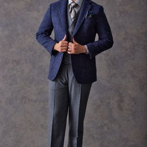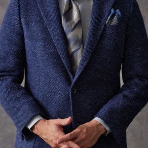 フランネルの創設者として公認されているイギリスの高級ブランド「フォックスブラザーズ」で仕立てたジャケットです。肉厚な生地感のヘリンボーン柄で、秋冬シーズンの生地になります。肩パットや芯地を極力排したアンコンモデルでジャケットを仕立てました。シンプルなネイビーをベースにしているので、長く愛用できる1着に。目付もしっかりしているので、耐久度も兼ね備えているところもポイントの一つ。ネクタイスタイルも良し、カジュアルなノータイスタイルでも使えます。