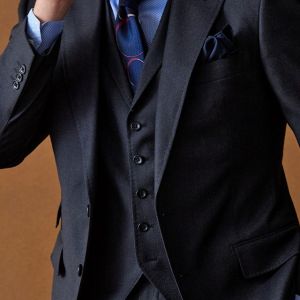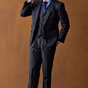 世界中のセレブリティから支持を得ているラグジュアリーブランド「ロロ・ピアーナ」で仕立てたスーツです。落ち着いたチャコールグレーの生地で、オールシーズンの生地になります。クラシックな部分とセクシーさを融合したモダンクラシックモデルで仕立てました。スリーピースでクラシカルな雰囲気に加えて、襟付きのベストでさらに重厚感を加えています。チェンジポケットでシャープ感を出しているのもポイントです。ブルー系のシャツとネクタイで統一感を出しています。