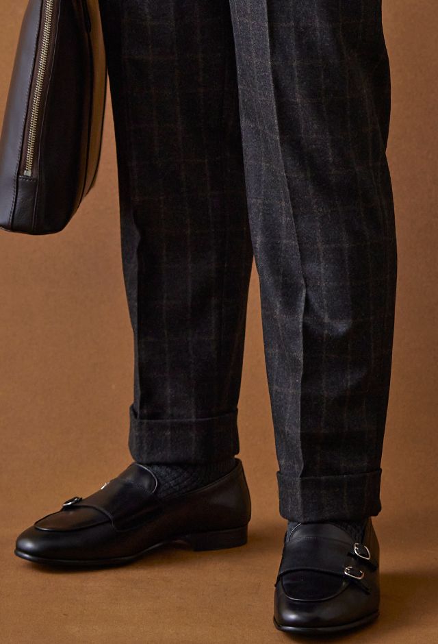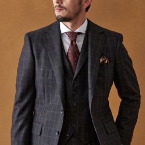 高品質でコストパフォーマンスに優れたイタリアブランド「カノニコ」で仕立てたスーツです。起毛感のあるブラウン色のチェック柄で、秋冬シーズンの生地になります。クラシックな部分とセクシーさを融合したモダンクラシックモデルで仕立てました。落ち着いたカジュアル感のあるブラウンをスリーピースにしてカッチリ感もプラス。派手すぎないチェック柄がビジネスでも着やすい1着に。ネクタイは温かみのあるボルドー色で、スーツの生地に合わせたコーデにしております。
